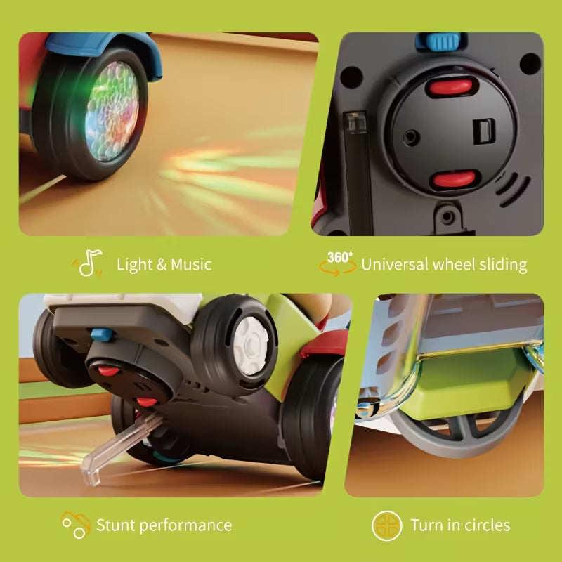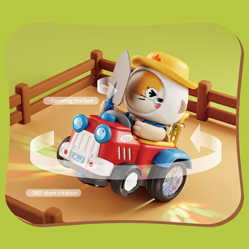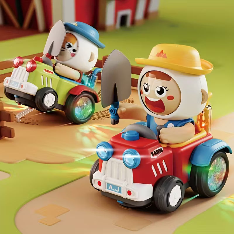 اللعبة عبارة عن شخصية مزارع كرتوني ظريف راكب عربية زراعية مليانة ألوان وإضاءة LED، بتلف وتتحرك لوحدها وتدي للطفل تجربة لعب ممتعة ومختلفة.
