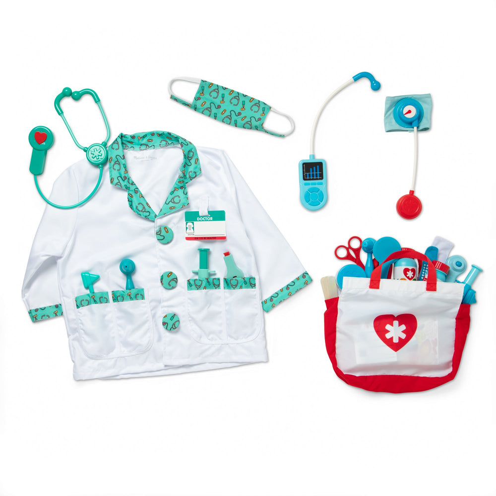 Encourage empathy and imaginative pretend play with this two-pack bundle that lets kids be the doctor or the patient and help friends and family get well! The Doctor Costume Role Play dress-up-and-play set has everything a child needs to look the part, plus exciting accessories to spur imaginative play. Combine with the 25-piece Get Well Doctor’s Kit with realistic pretend play patient care essentials to examine and treat patients. Please note items may ship separately.
