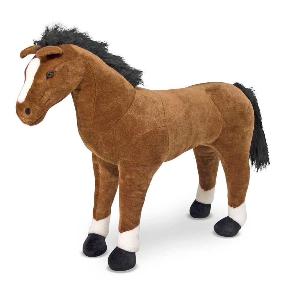 Horseplay is lots more fun when you have a realistic horse ready to play! Almost three feet tall, this gentle brown horse has a blaze on its forehead and four white stockings. Attention to detail and excellent quality construction make this horse stand out from the herd!