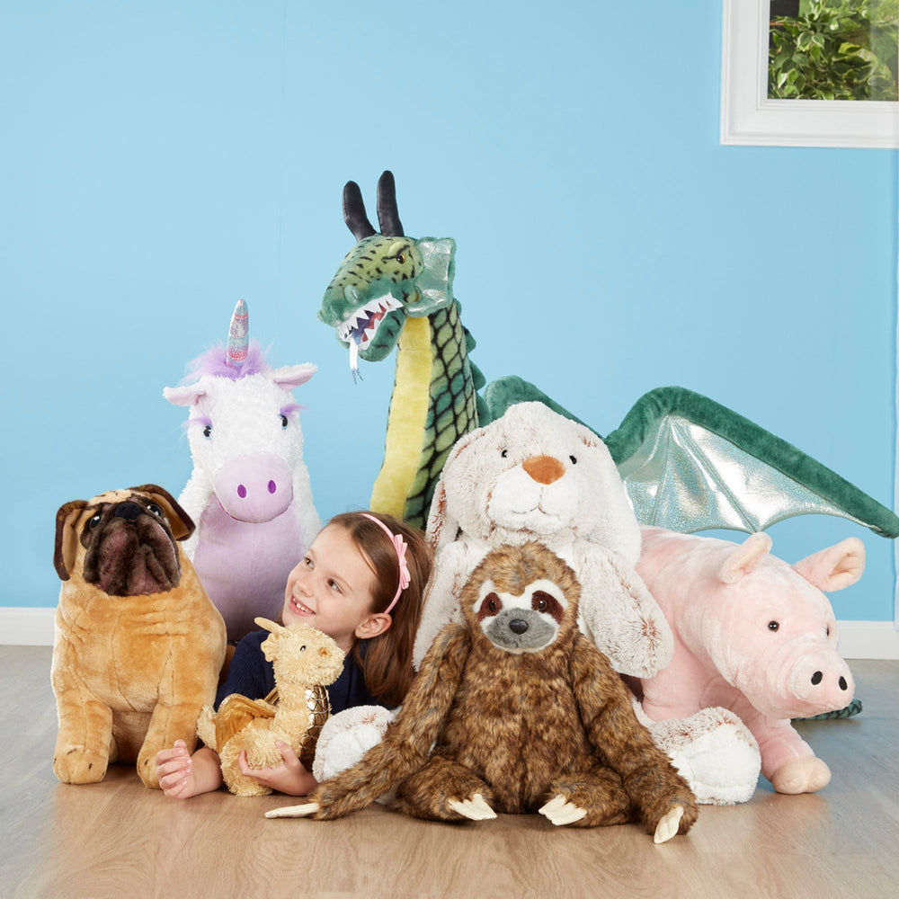The adorably oversized lop-eared Jumbo Burrow Bunny will hop happily into any child’s life! Extra-soft and squishy plush and fill make this bunny perfect for petting and hugging. Durably made from top-quality materials, it will last through years of cuddles. The two-toned beige bunny rabbit sits about 21 inches tall and 20 inches wide. With a sweet face, long ears, and big, floppy feet, it’s ideal for kids’ rooms, from nurseries to college dorms!