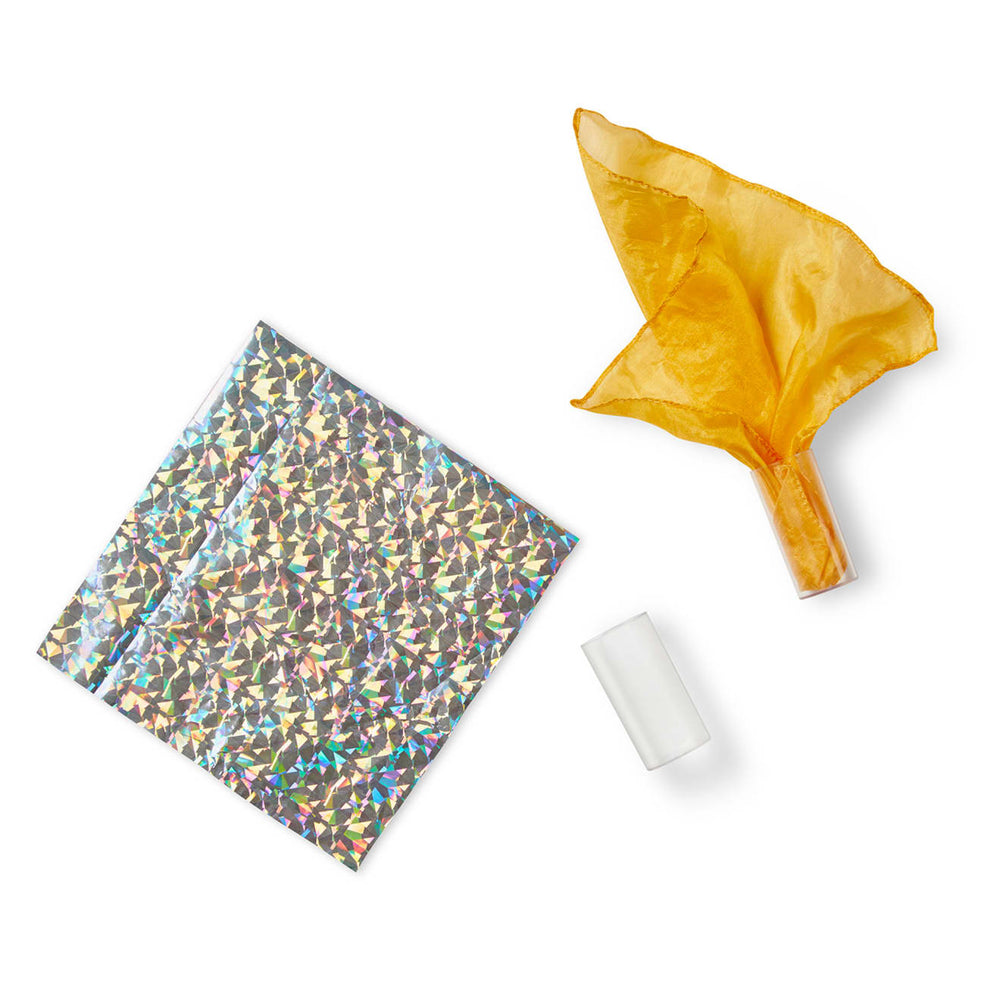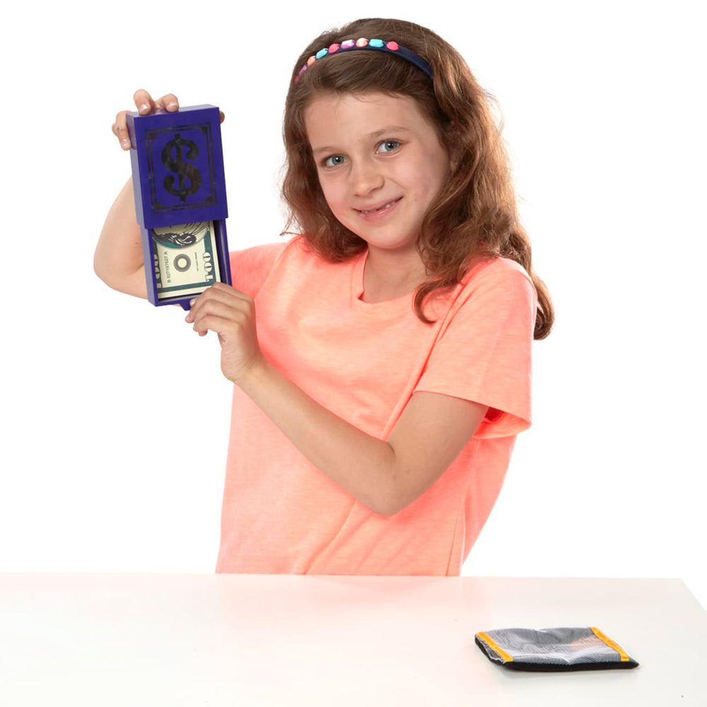 It's a snap to learn and perform these professional caliber magic tricks! The tricks in this collection, geared for kids four and older, are simple to master, yet truly amazing to behold. The 12-piece set includes a coin that magically appears in a mesh bag, a case that makes a "$100 bill" disappear and re-appear, ball and vase tricks, and a scarf that disappears from a clear tube! Easy-to follow illustrated instructions help budding magicians learn the secrets behind these classic tricks that are sure to wow audiences of all ages!
