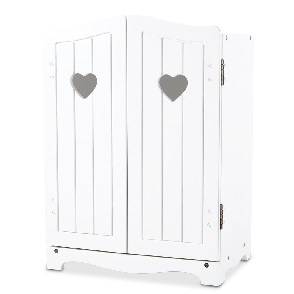 Help favorite dolls and stuffed animals get organized with this realistic and modernly styled wooden armoire that suits any décor! There are three shelves for folded doll clothes and a rod with three hangers for dresses and jackets (clothing not included). The sturdy white closet with two hinged doors stands approximately 17 inches tall and features a wipe-clean surface. Clear instructions make it easy to assemble with just a screwdriver (not included). Mine to Love dolls and accessories encourage empathy and help kids express themselves as they explore grown-up roles and responsibilities. A child’s confidence and self-esteem blossom and grow with each nurturing moment of imaginative play!