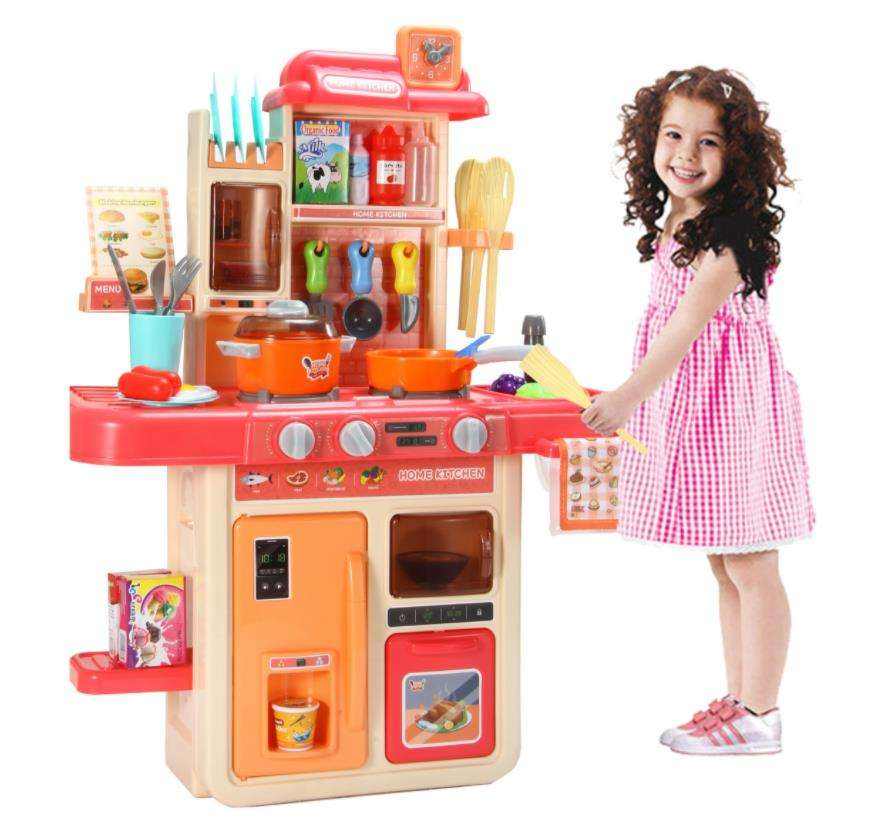 لعبة مطبخ متعددة الوظائف: تشمل مغسلة، أدوات طهي مع أواني صغيرة، وإضاءة وأصوات واقعية تجعل اللعب ممتعًا.