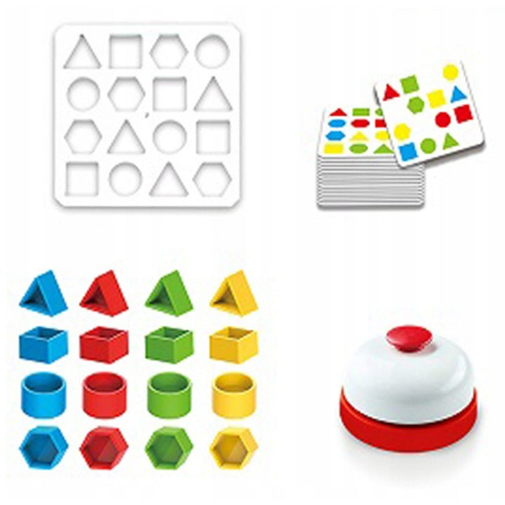 تعتمد اللعبة على تطابق الأشكال الصحيحة على اللوح، وعند نجاح الطفل في إتمام المهمة يقوم بالضغط على الجرس ليحصل على لحظة فوز وتحفيز تشجّعه على الاستمرار واللعب أكثر.